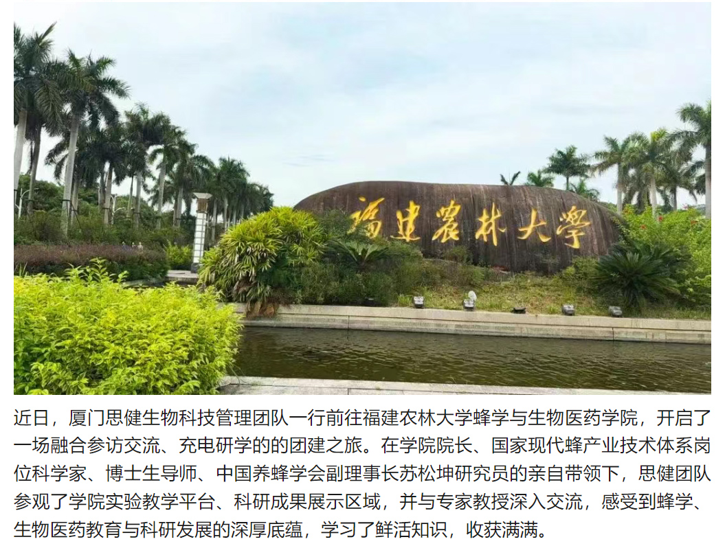 思健管理團隊赴福建農(nóng)林大學(xué)蜂學(xué)與生物醫(yī)藥學(xué)院團建研學(xué)