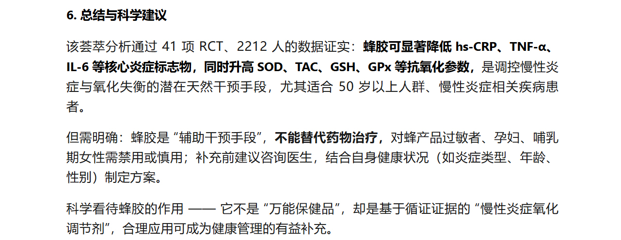 蜂膠與炎癥、氧化應(yīng)激:基于 41 項(xiàng)臨床試驗(yàn)的權(quán)威科普解析